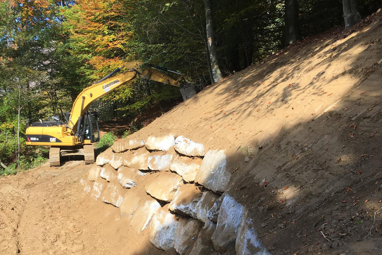 Formazione di scogliere di ogni genere, costruzione arginature e rinaturazione riali.